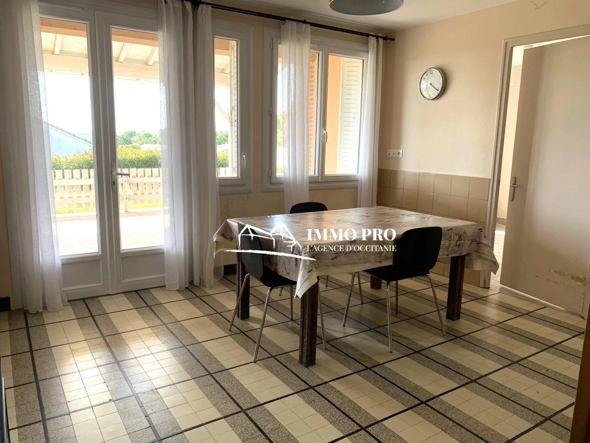 Near the centre of Samatan, SINGLE-STOREY house of 84m² of living space with entrance, living room, separate kitchen, 3 bedrooms, bathroom, toilet, and laundry room with toilet. Terrace. Land of approximately 650m².