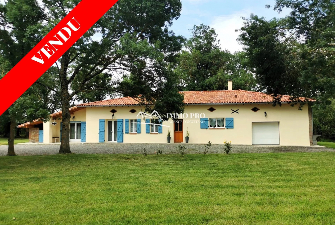 Entre St Lys et Samatan à 40mn au sud-ouest de l’AEROPORT Toulouse-Blagnac, gasconne totalement rénovée d’environ 155m² habitables de PLAIN-PIED proposant un grand séjour et sa cuisine équipée ouverte, salon, 3 chambres dont une suite, espace bureau, salle d’eau, toilettes. Buanderie, GARAGE et GRANGE complètent ce bien. JOLI PARC ARBORE plat de 4.900m² sans vis à vis avec terrasse, mare, puits, potager. PRESTATIONS DE QUALITE: Chauffage par pompe à chaleur air/eau, poêle à bois, double vitrage, bonne isolation, DPE C. Charpente et toiture neuves, portail électrique, visiophone. 10mn commerces et écoles de Rieumes et Samatan.