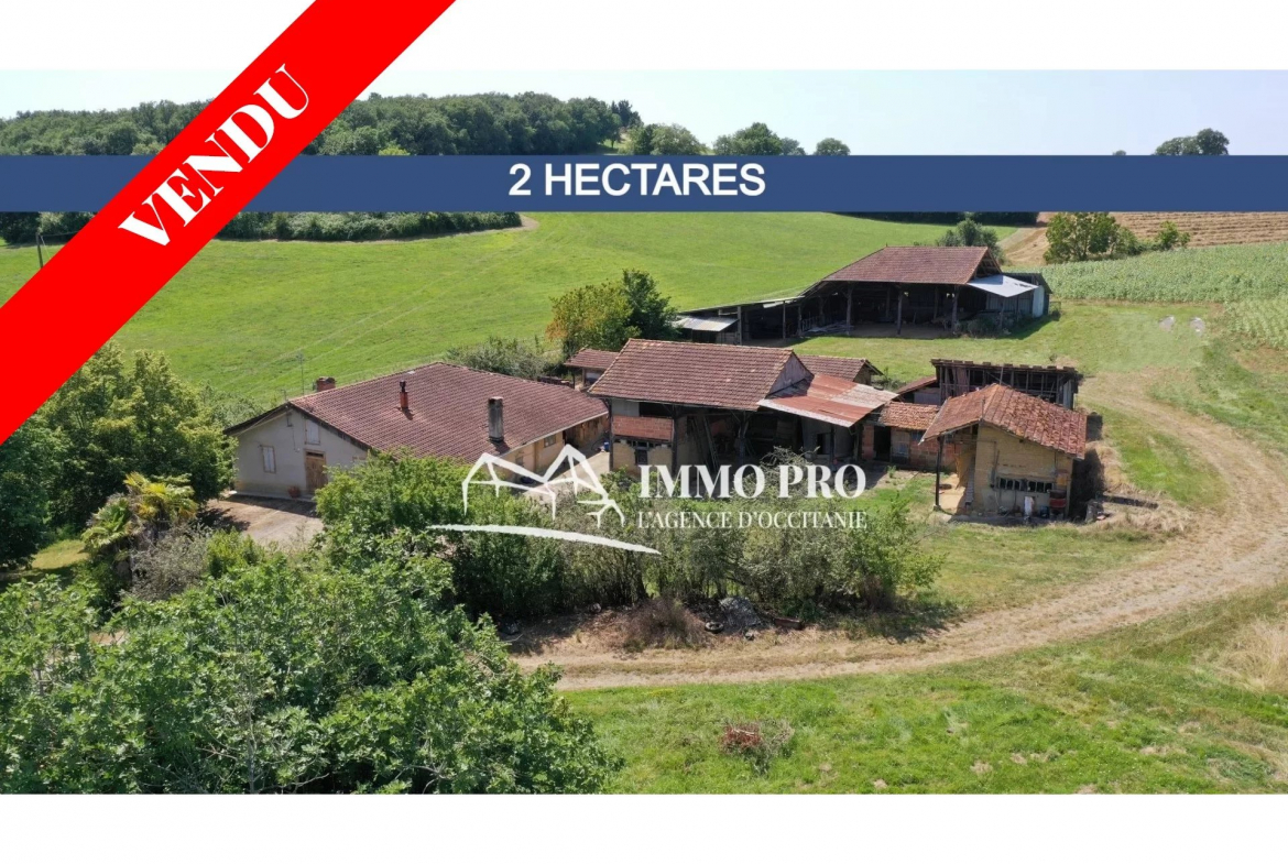 En EXCLUSIVITE – A 20mn de Samatan, 8mn des premières commodités, au calme au bout d’un CHEMIN PRIVÉ, sur environ 2 HECTARES, Maison ancienne d’environ 126m² habitables à rénover entièrement. TOITURES EN BON ETAT.